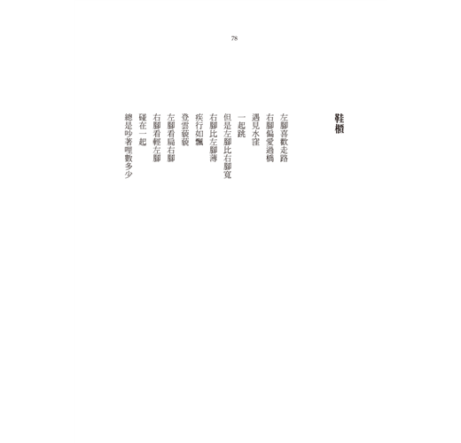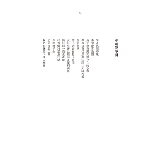 事實上,歲月忽忽,哭笑都當眼前花,繡不了珍珠,繡蛛絲,繡不了雨絲,舔舔口水,假裝一滴清淚交代時不時就會走鐘的路數,明的是分行,暗的是散文,難道印刷錯誤?