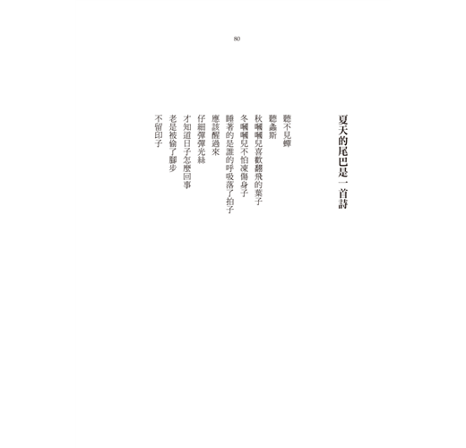 自白吧:能寫詩,幸福,沒有什麼事情大到值得用一個小說詮釋,僅僅在詩裡練習說一則胡思。