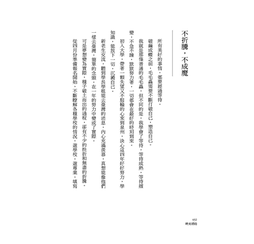 這是一份青春記錄,一個女大學生跨越海峽的求學歷程,一個兩岸視野的心靈淬煉與思索。
