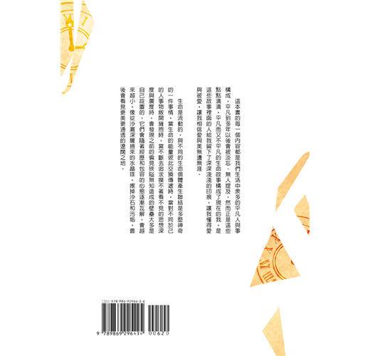 這本書的每一個內容都是我們生活中眾多的平凡人與事構成,平凡到多年以後會被淡忘、無人提及,然而正是這些點點滴滴,平凡而又不平凡的生命故事構成了現在的我,是這些故事裡面的人給我留下了深深淺淺的印痕,讓我懂得愛與被愛,讓我相信愛與美無邊無涯。