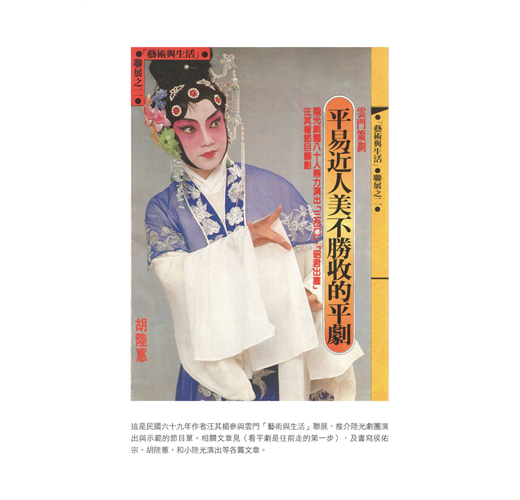 第三部分,就是記下文前所提到的,我得以近身相處的前輩,和一些戲曲友好們,寫出我的懷念,和推廣戲劇藝術工作中的希望。「懷念」、「希望」就是這輯文章的名稱。