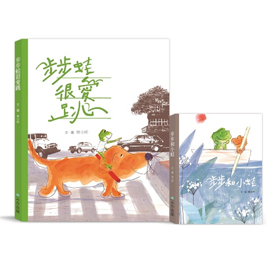 《步步和小蛙》小書,收錄步步蛙與妹妹小蛙兩人的可愛互動,以及兩人之間充滿創意的對話。令人捧腹大笑,又充滿哲思與親情的溫暖。