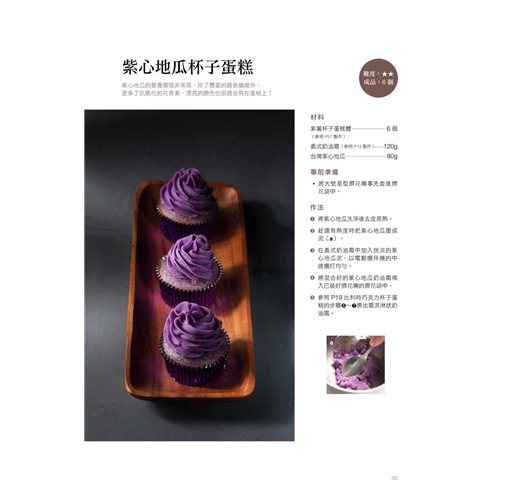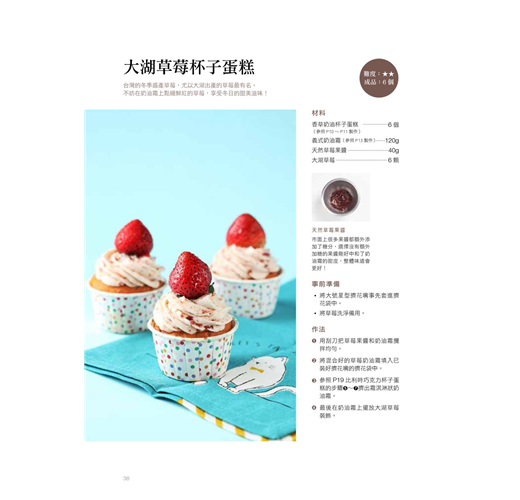 在裝飾技巧方面,書中詳細介紹了基礎必學的奶油霜擠花,包括霜淇淋狀、點狀、葉子、玫瑰花等擠花技法,讓讀者能夠加以學習應用。而擅長翻糖製作,並已取得英國糖藝PME專業翻糖文憑課程證書、英國PME蛋糕裝飾導師認定的作者,也按照各種重要節日,例如:情人節、甜蜜婚禮、畢業典禮、萬聖節、聖誕節等,介紹製作可愛精緻翻糖杯子蛋糕的技巧,不管是歡度節慶、生日派對或姊妹淘聚會,送禮自用都很適合。不妨跟著本書一起DIY,做出屬於自己獨一無二的杯子蛋糕吧!