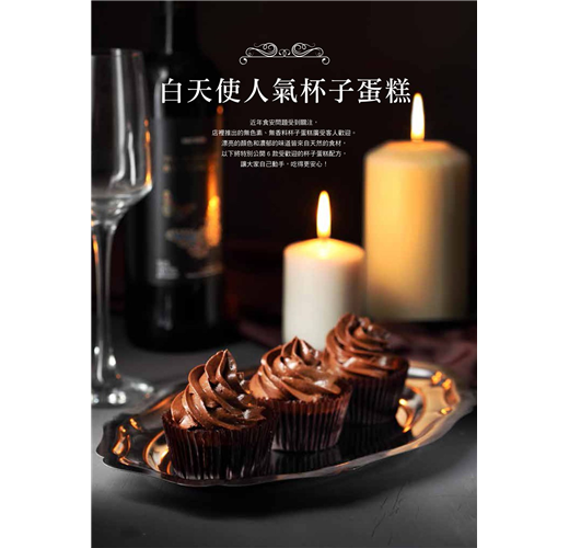 本書由曾在台灣蛋糕協會舉辦的2014年聖誕節蛋糕比賽中獲得杯子蛋糕第二名、目前正在經營「白天使手作烘焙」教室的作者,不藏私分享多年烘焙的實戰經驗。除了介紹不同口感的蛋糕體──輕柔鬆軟的「棉花蛋糕體」與紮實濕潤的蛋糕體之外,在風味變化方面,則運用了巧克力、蔬果、堅果、茶類等豐富多樣的材料,做出百變的杯子蛋糕,讓讀者可依個人喜好選擇。