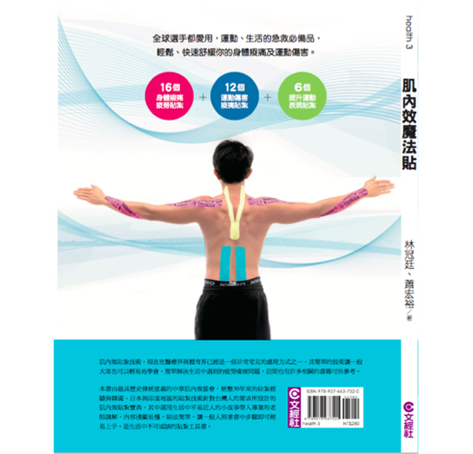 這本書和市面上一般的貼紮書籍不同,是我們「中華肌內效協會」自己出的書,除了有一般生活貼紮之外,更加入了運動傷害與運動表現的貼法,讓大家在運動的時候更能有效的保護自己的身體,此外,還附上了「中華肌內效協會」的一些相關歷史,讓大家更認識我們協會,希望未來在世界各地,能夠有更多的人因為肌內效貼布而受惠,我誠摯的推薦這本書給每位注重健康,愛好運動的你。