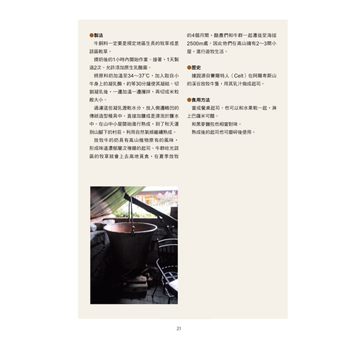 還收錄了作者多次前往採訪各款起司製造者時,聽及的軼聞、時空背景、起司製程、製造場所‧熟成場所等等的介紹。