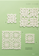 鉤好一枚織片,就能作為杯墊使用;連結數枚,可以是桌巾、是領片、是波奇包。以零碎時間累積較多織片,就能拼接出圍巾、披肩、膝上毯,或大型床罩。小小一枚織片,再加上每個人不同喜好的配色,能夠變化出無限可能!