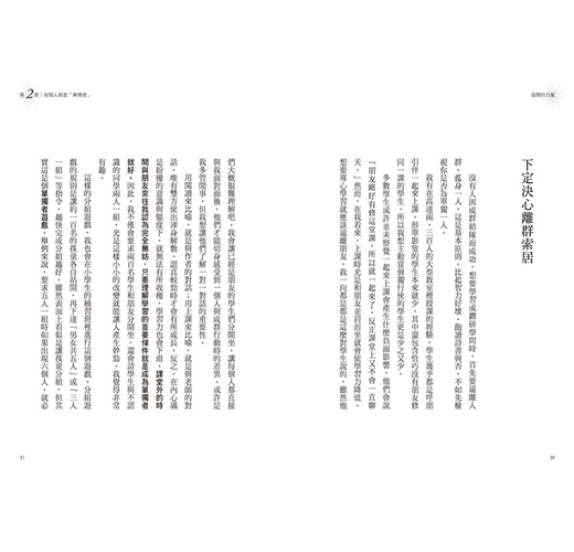 我總在凌晨時享受齋藤孝在行距分明的文字間鋪陳的孤獨感,越安靜的時光,越能體會到他說:「閱讀,就是與作者的對話。」我心想,啊!原來這世上真有人懂我。像齋藤孝說的,生命在「獨處」時爆發的能量實在驚人,而我在那些夜深人靜時萌發的點子,也的確常成為工作上亮點,效果讓我的合作對象感到驚艷,而這樣的想法通常很難在一群人開會討論時可以產出。