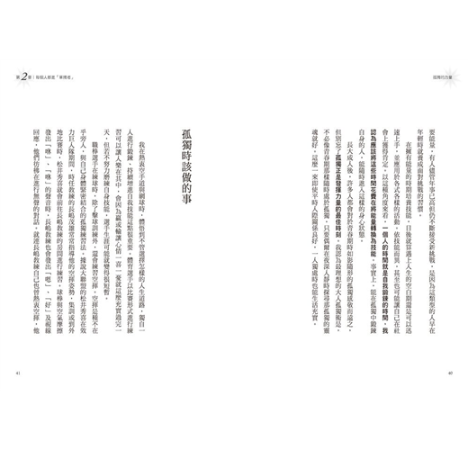 當年輕時投身孤獨最適合不過。徹底磨練自我,分出勝負,是自己積極選擇孤獨,這可稱之為「孤獨的技法」。本書將以各種角度思考孤獨。當讀者能夠與孤獨和平共處時,即使是片刻的時光也會變得創意無限。這本書可說是對孤獨力量感同身受的我所寫的一本「孤獨禮讚」。