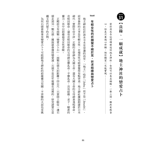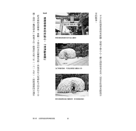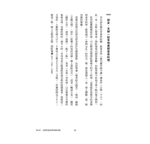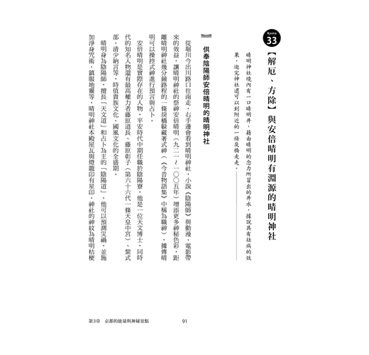 作者列出100項關於京都的關鍵字,從食文化、神社寺院、風俗習慣到歷史謎團,帶領讀者透過不同視角深度認識京都,貼近當地人了解他們每個月必吃的食物,藉此吸收他們的生活智慧。對於歷史有一定了解的人,可以跟著本書一起經歷本能寺之變、應仁之亂與天王山之戰,從歷史人物彼此糾結的命運中,拼湊出他們的相同與相異之處。