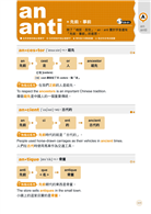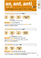 Chapter 1 A~D A ab 偏離,離開 ac 向,對於 act 行動 ad 向 an, ant, anti 相反的,未,抗 an, anti 先前、事前 ap 向 art 藝術,人工 as 朝……,向… … at 向 auto 自己 B be 成為……,使… … C cir, circum 環 civ 市民,文明 co 共同 com, con 完全 con 加強 contra, contro 相反 crit 批評 D de 向下 de 完全 de 離開,分離 dict 口述 dis 否定,不 dis, di 分離 dis 完全