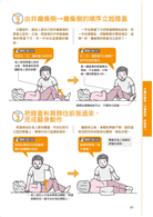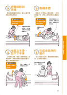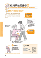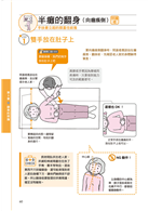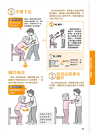 ●NG動作一一列舉不遺漏:本書網羅各種照護狀況下可能發生或是常見的「NG動作」,萬一按照圖示步驟無法順利完成時,「NG動作」猶如小幫手般,即時提醒你,像是:膝蓋豎得不夠高,翻身有困難;直接拉老人家的手,不但造成疼痛,還可能受傷;雙腳打開距離過窄時,容易跌倒……等。