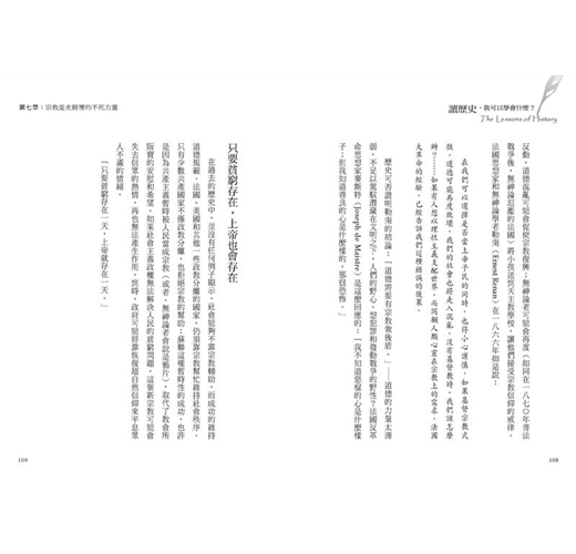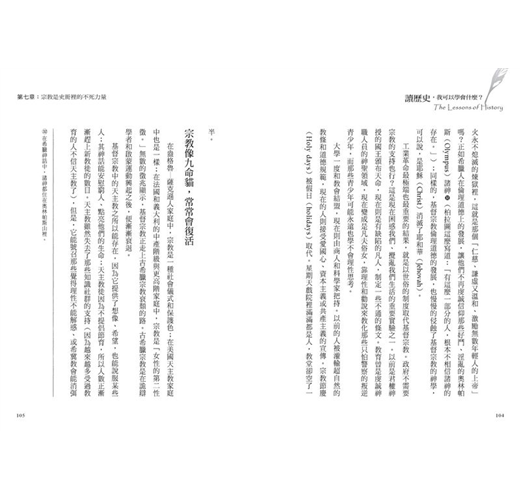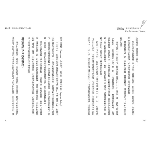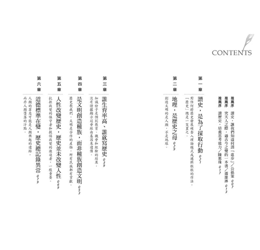 「比起那些很少看書、光聽街談巷議就自認對人性了解一二的人,你有沒有更透徹的領悟?你能否藉歷史燭照出現今的情勢?藉歷史之見做出更好的判斷及決策?進而預測人類未來的動向或一個國家未來的興衰?」