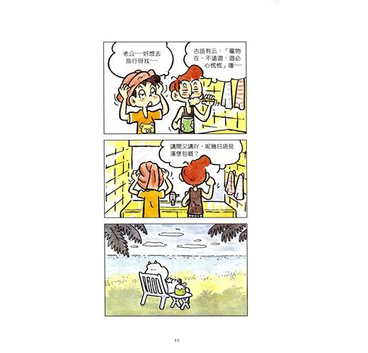 這是一部輕鬆詼諧、適合任合年齡讀者的三格/四格漫畫。主要人物有阿三、茵茵、外父、外母,還有寵物貓漢堡包、小肥等。主人翁阿三是個普普通通的香港男人,常常被「貪靚」、「惡死」但可愛的太太茵茵欺負。故事內容大多圍繞香港人的生活點滴,題材非常廣泛,由熱門的手機遊戲和電影、愛貓人的趣事,到懼內的外父與外母的生活、夫妻相處的苦與樂都有,許多場面令人會心微笑。書中亦偶有作者對時事、環保等議題的看法,以活潑有趣的漫畫引起讀者思考。