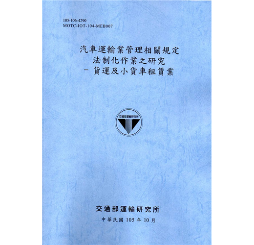 為因應內外在環境變化及未來趨勢,本報告檢討當前貨運及小貨車租賃業之產業政策及未來發展趨勢、盤點現行所涉汽車運輸業管理相關規定、蒐集相關法規、進行法規內容與管理機制比較、分析產業現況與重要課題及挑戰、提出明確的產業政策方向、探討所涉相關管理規定法制化作業與法規之更新及影響,最後提出產業法制更新主張及修訂芻議。