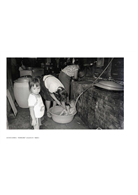 別無他法,只有常常去,期望一回生,兩回熟。就這樣戰戰兢兢拍了一段時間。一天晚間,我帶著幻燈機,約了十來個拾荒者,在垃圾山下一間簡陋的租屋處,給他們做slide show,希望能透過我拍攝的影像和他們進行溝通。當下,他們的工作身影,一張張接映在斑駁的灰白牆上,笑聲此起彼落,迴盪在這狹窄的斗室。自slide show後,他們對我的相機不再排斥,我的拍攝工作就順利多了,但是吃飯的時候,仍不准拍攝。我想,就像俗話說的「吃飯皇帝大」吧,也可能不願意留下坐在垃圾堆裡吃便當的難堪畫面。
