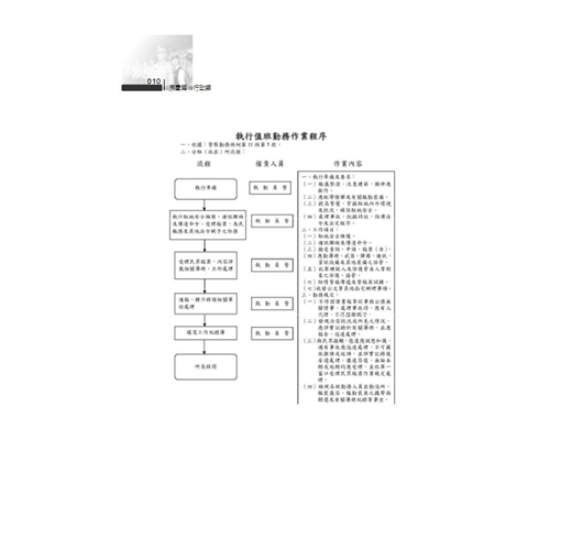 使用功效 完整闡析警察實務上所面臨各種情境實務,作者擔服基層第一線警務工作多年,將內容分為「行政類」、「刑事類」、「交通類」、「保安類」等四大領域。配合法條、流程剖析、情境模擬演練等方式,讓人快速了解警察工作的體系架構和執行規劃方向。