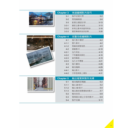 第五章 輸出檔案與製作光碟:影片編輯完成,就可透過本章學習根據要播放的設備,將影片輸出為合適的影片格式以分享放送,或是製作成影片光碟保存與分送