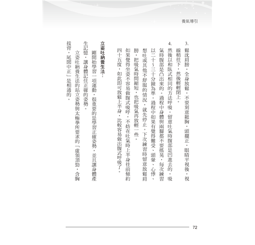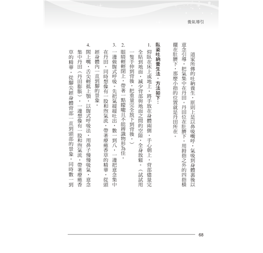 這是一本立即可實踐的養生之書,作者以多年鑽研與實踐,分享他透過呼吸養氣和舒通經絡達到強身健體的效果。