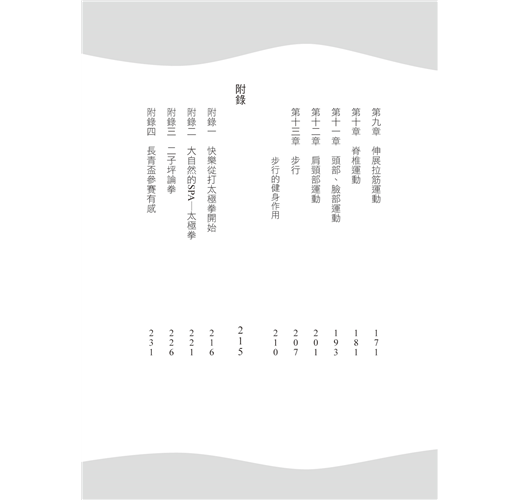 本書能夠完成,要感謝我的恩師─成功大學醫學工程研究所教授周有禮博士,在百忙中不辭辛勞,經常以長途電話和我討論甚久,他以一貫嚴謹的科學治學態度,指導我修正補足缺失之處。逍遙氣功傳承人李靖老師長久以來熱心謙誠地協助我進步。台北市太極拳協會魏博南理事長與洪美華老師辛勤推廣太極拳運動。還要感謝吾兒以耕、媳婦姚燕,以及陳姿伶小姐協助圖示繪畫,他們的用心繪製的圖畫讓本書更為生動易讀。吾妻賢皓經常與我討論她近二十年的練拳體驗,供我參考。太極拳界前輩吳銘華老師與張隆娟師姐的熱心協助。蕭珮瑄小姐費心繕打。小兒一桓與次媳佩融也經常關心進度,提供意見。最後,感謝陳文龍先生熱心協助,本書才得以順利出版。