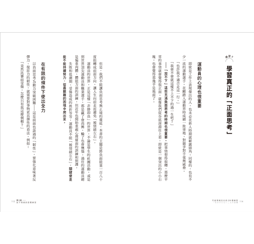 其實不止運動選手,一定還有很多人因為健康或經濟上的問題而感到不如意。我們要學習的不是「環境差」、「真正的我不止如此」這種強迫式的正面思考,而是從「現在能做的」著手,學會真正的正面思考。