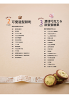 書中對於每款人氣甜點,都有詳細的製作說明與圖解示範,即使是烘焙新手也能成功完成每款甜點。另外還有結合糖霜、巧克力、打發鮮奶油、糖花裝飾等,讓造型更具特色的裝飾技法,以及足具創意巧思的各式超實用的贈禮包裝技巧,基本入手簡單好學,讓您看著看著就能做出各式可愛糕點,還能把美味的甜點變成滿滿心意的別緻的禮物點心。