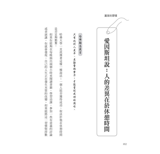 ☆愛因斯坦說:人的差異在於休憩時間。(勤奮的習慣)