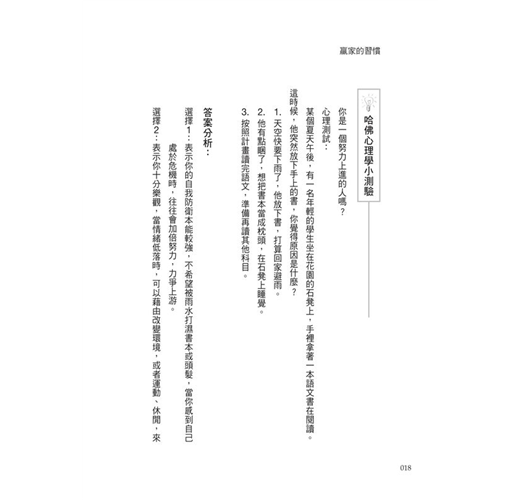 ‧提供38則哈佛勵志名言,以及37題哈佛心理學小測驗。