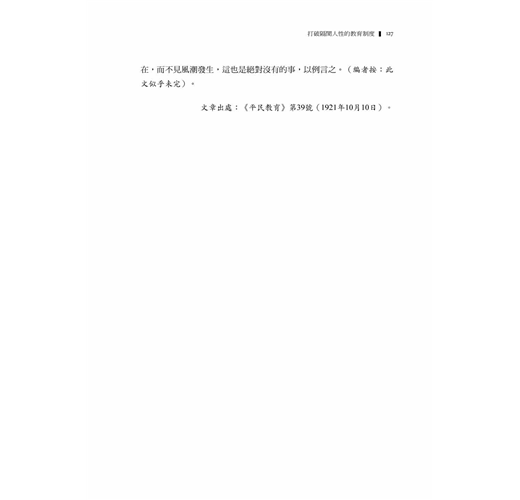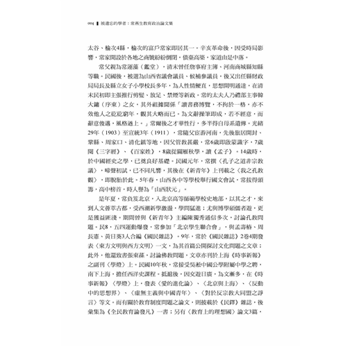 常燕生是何許人也?他是早已式微的「第三勢力」:中國青年黨在民初的早期領導人,以批判孫中山的《三民主義》著稱。然而在政治之外更不為人知的是,常燕生還是一位教育思想家,對於民初教育環境有著深入觀察。他當年積極提倡的「社會教育」與「全民教育」,其闡述論述即使放到今天,仍有其遠見與卓識。本書另外還收錄了常燕生當年與陳獨秀透過《新青年》雜誌往來的信函,深入討論了民初教育文化與政治面向。