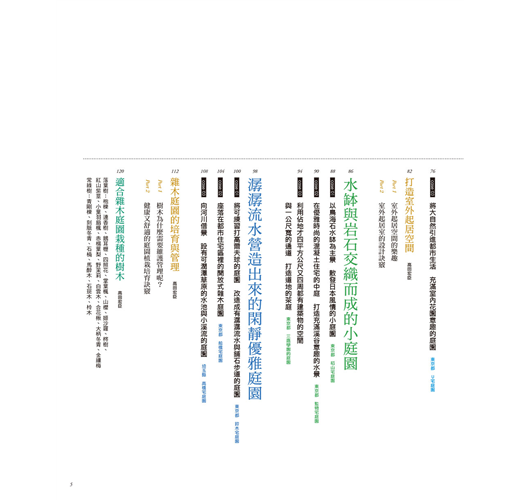 此外,書中也會針對設置造園景物的庭園,相當值得一看的「自然風庭園」做詳細的介紹。對於日本庭園特有的美、心、技將有更深一層的認識。