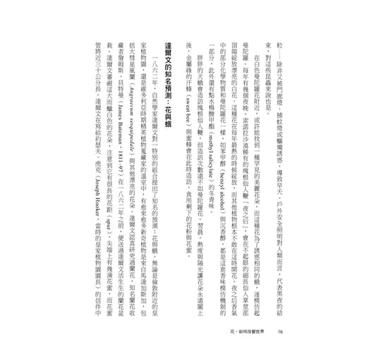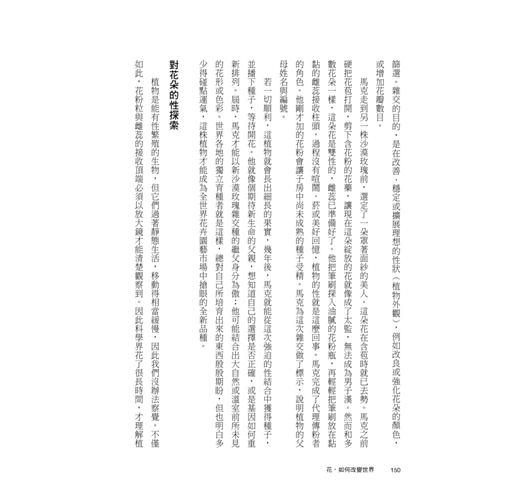 雖然對花朵的喜好來自於人類天性,因為它是生命繁衍的象徵,而且如同哲學家懷海德所言,對美麗大自然的讚嘆是人類文明的起源,但是若我們能夠從花朵美麗的外表開始,進而探索有關花朵的科學、歷史以及與人類的關係,《花,如何改變世界?》這本書帶來的知識饗宴,相信能給我們更深的感動。