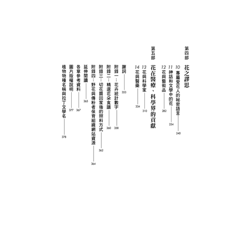 這是本不可多得的好書,不僅主題廣泛,又講求科學的精準度,完整傳達出花的歷史文化意涵,且文筆富有詩意。