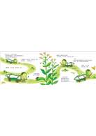 但是,成長就是這麼一回事,除了遇見問題正面對決之外,常常需要一些時間的醞釀,這也是培養意志力、續航力的關鍵時刻。在那一段漫長的等待期間,小蠶豆和新朋友花豆、鷹嘴豆、甜豆姊妹一起玩、一起手作晴天娃娃,一刻都不得閒。其實,這樣的安排也非常符合幼兒實際的生活狀況── 成天動個不停、玩個不停,卻也成長個不停!