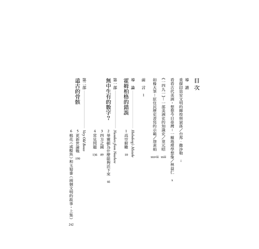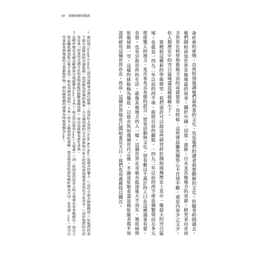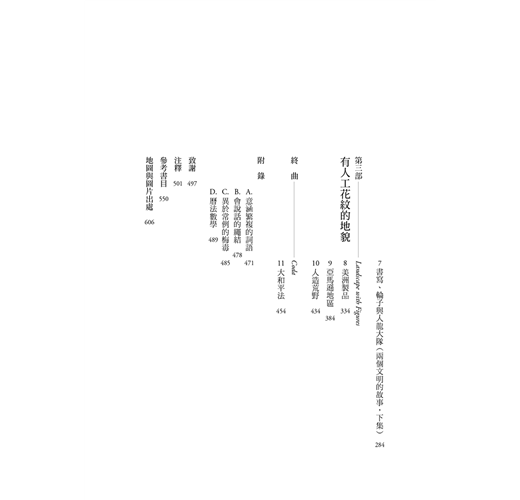 所以,本書探究的是我認為那些新發現當中的三個主要焦點:印第安人的人口(第一部分)、印第安人的起源(第二部分)和印第安人的生態(第三部分)。由於有許多不同社會各自以極為不同的方式展現了這三點,因此我不可能做到詳盡無遺。我在本書中使用的案例都是挑選自文字記載最充分的文化,或是近來最受矚目的文化,或者純粹是看起來最奇特的文化。