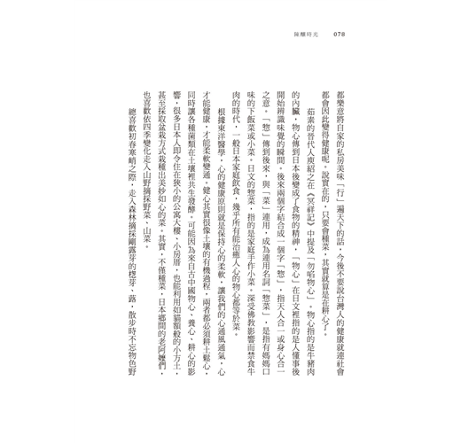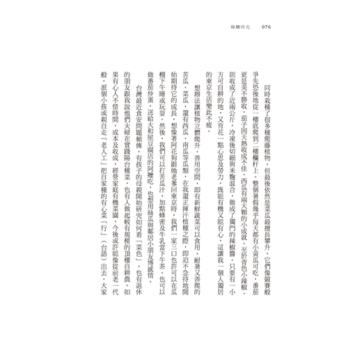 如今已退休的洪さん,她已進入了所有入口食物都講究手作的田舎生活。她的生活世界,既不是「日本文化」的實踐,也不是「昔日台灣」的再現,那是她為了表現個人獨特文化與品味,所展現出來的「思想實踐」。我推廌這一本洪さん的生活世界,因為閱來令人為之心快。