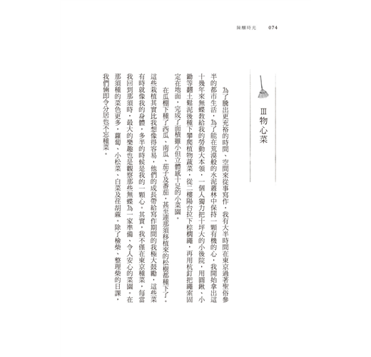 而書中提倡了凡事手作的田舍生活,耕作、烹飪、醃漬、釀造,晴耕雨讀。在每日作息中,藉由飲食來撫慰勞動的身體,再由勞動的身體,栽種飲食之所需,巧妙達到人與自然最和諧的循環,也開啟了身心合一的療癒之道。