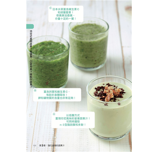果汁尚分成慢磨機、果汁機、熱飲三大類,讀者可依家裡現有的器材挑選製作。
