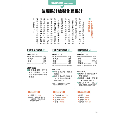 最精華的重點為烹調食材與製作蔬果汁的訣竅,以及蔬果皮再利用方法。