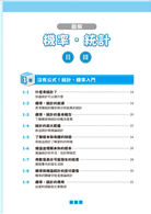 1. 由平均或變異數等基本統計量之計算,到估計、檢定為止,讓讀者理解機率、統計的完整概念。