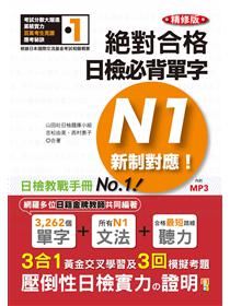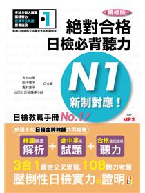 新制日檢考試,把聽力的分數提高了,合格最短距離就是加強聽力學習。為此,書中還附贈光碟,幫助您熟悉日籍教師的標準發音、語調與符合N1聽力的朗讀速度,讓您累積聽力實力。為打下堅實的基礎,建議您搭配《新制對應 絕對合格!日檢聽力N1》來進一步加強學習。
