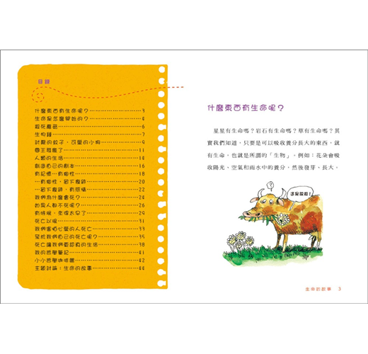 星星有生命嗎?花朵有生命嗎?到底,什麼東西是有生命的?生命又是如何開始的呢?如果從遠古一直到現在,所有人都不會死,會發生什麼事呢?是不是因為人會死,我們才會更認真的活著?