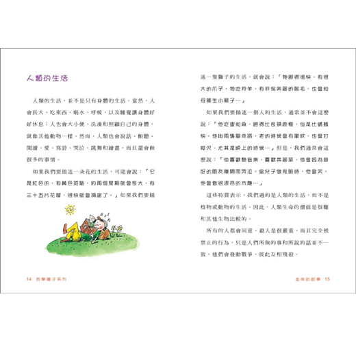 ◎作者用說故事的方式舉例,漸進地提出人生重要哲學議題,不艱澀也不說教,能幫助孩子養成獨立思考的能力。彩色插圖輕鬆幽默具創意,以簡短的小故事呈現主要議題,文字精簡但直指問題及哲理核心,很能引起孩子的閱讀興趣,8歲以上的孩子可獨立閱讀,也適合團體共讀討論。──賴淑芳(中國時報開卷年度最佳童書)