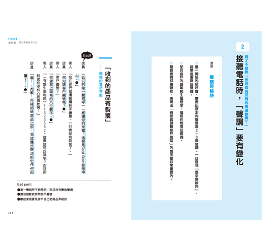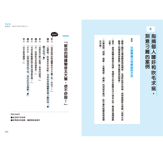 每一項都會指出問題點後,再解說所需技巧,因此本書也可當作是負責教育員工的指導員,以及客戶諮詢室的人的教戰手冊。