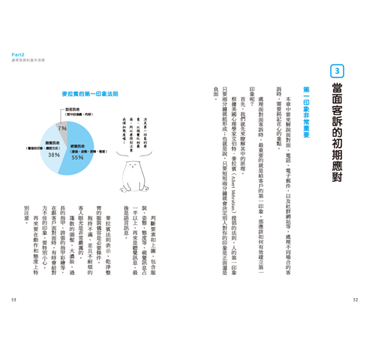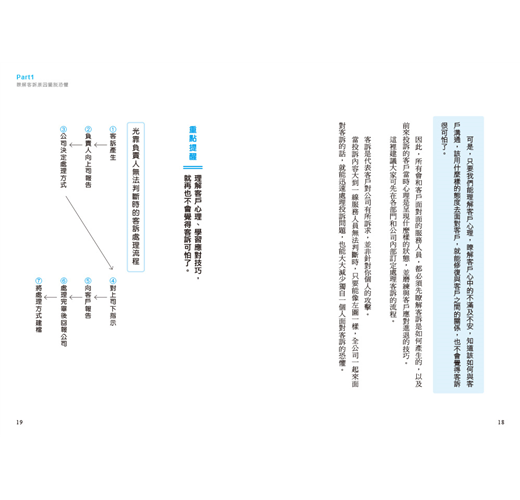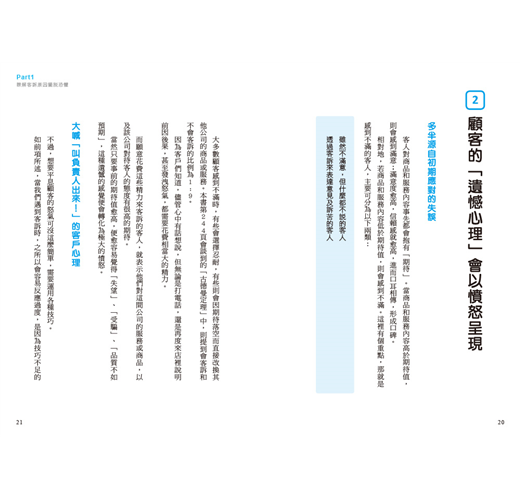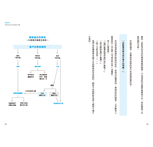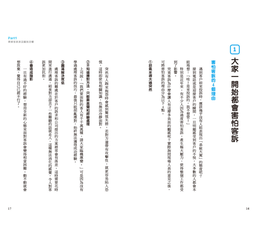 為了讓讀者能夠更深入理解後半部舉出的具體例子,PART1中,會先介紹客訴發生的原因、客戶心理,以及客訴發生的原理。