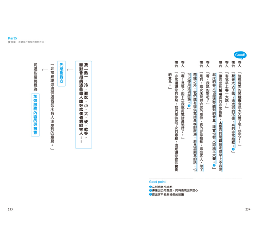 PART4和PART5為客訴事例集。在此會為大家介紹,容易出現的失敗例子以及妥善的應對方式,並舉出必要的技巧,供大家能夠實踐活用。