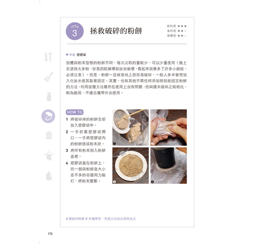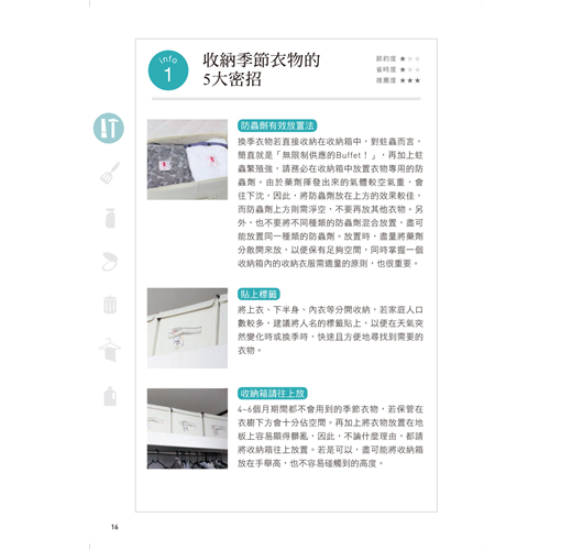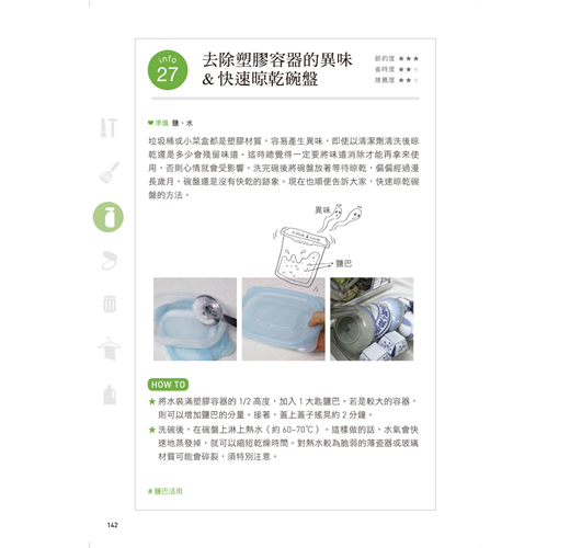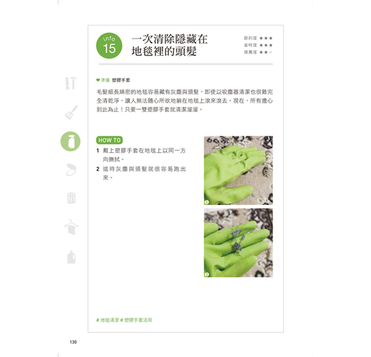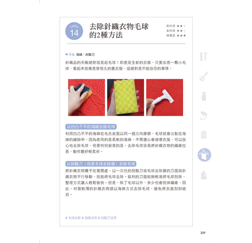 簡單至上,眼見為憑!──將主婦的工作分門別類後,只收錄親自試用且見證其效用的方法,並將效果拍照驗證。