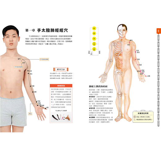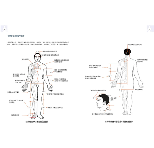書中不僅有真人圖,還有骨骼圖,用尺規和圖注標明穴位位置的方式,清楚又直觀,不好找穴的問題,除了整體的大圖,每個穴位都單獨給出了取穴示意圖,讓讀者找穴更準確。