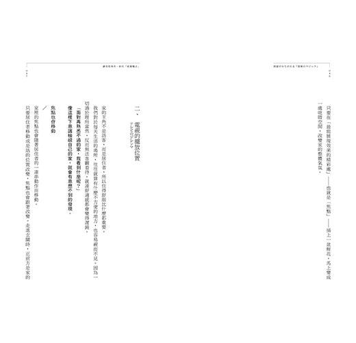 基本上,我會先和客戶一起仔細檢視「住家的現況」,也就是什麼地方擺置什麼東西。令人詫異的是,我發現許多家庭的電視都擺在最重要的焦點處,也就是說,「房間最重要的居家裝潢點」成了電視的固定位置。