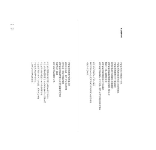 我在自己的腦海中建立了一張幻想地圖,其中一個城市,只要有一個居民心有遲疑,城市的時間就會忽然靜止,咖啡杯會就這樣停在即將碎裂的前一秒、牛奶打翻、番茄醬擠出幾乎就要噴到純白衛生衣上、蛋殼撥開蛋白液體下墜而還未抵達平底鍋。如果住在這樣的城市,或許我就不再會有那麼多遲疑猶豫,害怕放棄任何一個可能性,舉足不前拖延症爆發,最後便因為要保有全部的可能性而變成一無所有。自費出版第一本詩集《1993》約是一年前,《我討厭我自己》是第二本詩集,詩集中的詩多是近一年所寫,若再給我多一些時間,恐怕詩集名稱、內容又要...