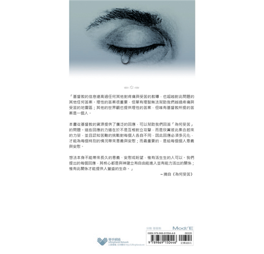 本書從基督教的資源提供了廣泛的回應,可以幫助我們回答「為何受苦?」的問題。這些回應的力道在於不是互相對立攻擊,而是欣賞彼此集合起來的力量,並且認知苦難的挑戰對每人各自不同,因此回應必須多元化,才能為每個特別的情況帶來意義與安慰;而最重要的,是給每個個人意義與安慰。